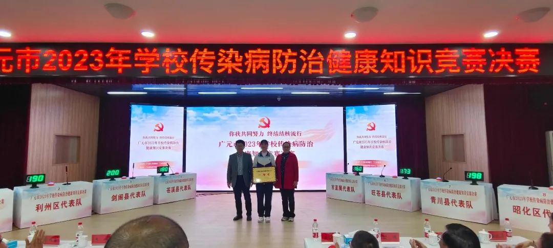 此次竞赛分为闭卷笔试、现场知识竞答两个部分,涵盖了传染病的传染源、传播途径、易感人群、临床症状、预防接种、实验室检查、预防性治疗等。我县参赛队员在赛前精心准备,积极备战,相互配合,不畏强手,沉着应对、团结协作、奋力拼搏,通过各环节的考核评比,在广元市四县三区7支代表队中,以全市第一名的好成绩获团体第一名,同时,剑阁县疾病预防控制中心张文飞、剑阁县职业高级中学阿苦石呷获个人一等奖,剑门关高级中学唐红梅获个人二等奖。
