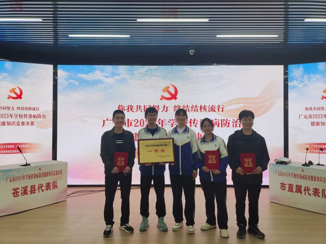 2023年3月21日,由市卫健委、市教育局主办,市疾病预防控制中心、市八二一中学承办的《广元市2023年学校传染病防治健康知识竞赛》在市八二一中学举行,我县通过层层选拔,由剑阁县卫生健康局副局长郭宏杰、剑阁县疾控中心主任吴婷、剑阁县教育局卫生防疫专班主任杨永生带领的剑阁县代表队参加了市级决赛。省疾控中心副主任张灵麟、省疾控中心结防所所长陈闯,作为评委出席本次竞赛。