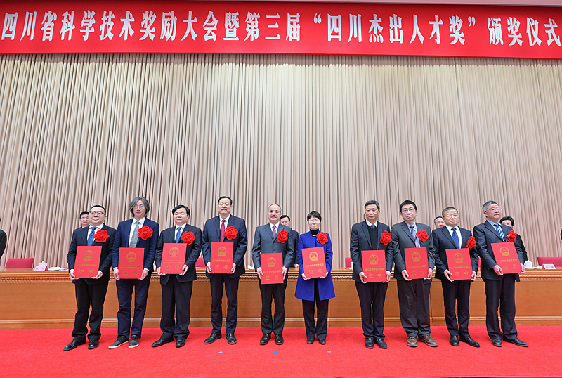 会上,宣读了省政府《关于2022年度四川省科学技术奖励的决定》和省委、省政府《关于授予王玉忠等14人第三届“四川杰出人才奖”的决定》。在热烈掌声中,王晓晖为省科学技术杰出贡献奖获得者王琪、赵金洲颁奖。随后,王晓晖、黄强等省领导为四川杰出人才奖和省科学技术奖获奖代表颁奖。获奖代表王琪、王海峰、翟婉明作交流发言。