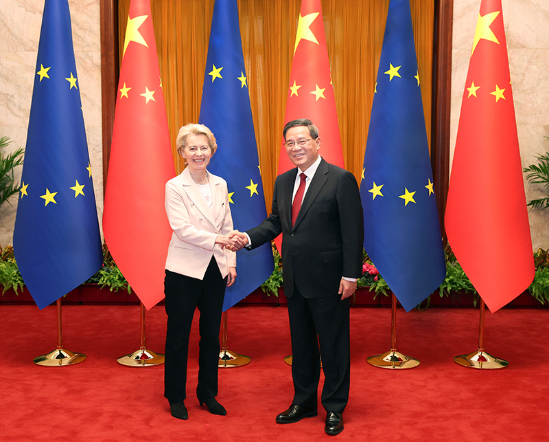 4月6日,国务院总理李强在北京人民大会堂会见来华访问的欧盟委员会主席冯德莱恩。新华社记者 庞兴雷 摄