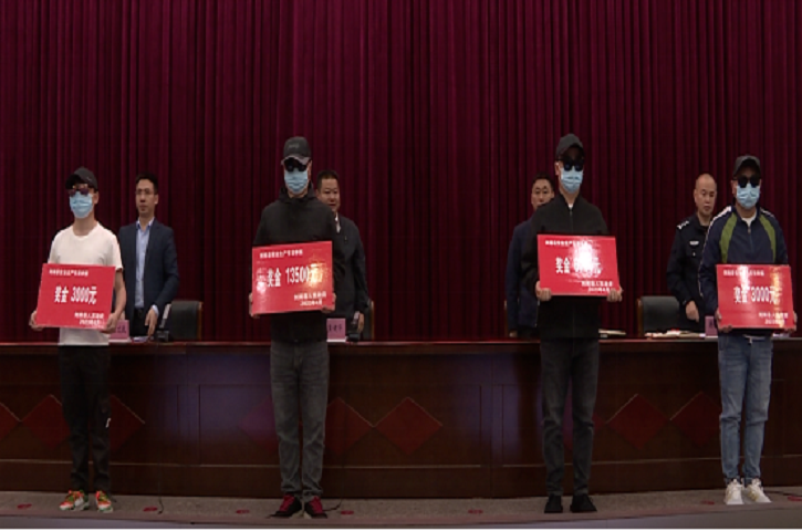 会议指出,县委县政府高度重视安全生产举报工作,通过“剑阁融媒”抖音账号、“剑阁发布”微信公众号、手机短信、有奖举报公示牌等多渠道、全方位、无死角宣传安全生产有奖举报工作,取得阶段性成效。截至目前,全县共接受安全生产举报线索12起,经核查情况属实9起,依法立案查处6起,对4名安全生产举报人进行奖励,其中:苟某(化名)13500元,刘某(化名)6700元,其余2人各3000元,共计发放奖金26200元。在会议现场,县委县政府为4名举报人颁发了奖金。