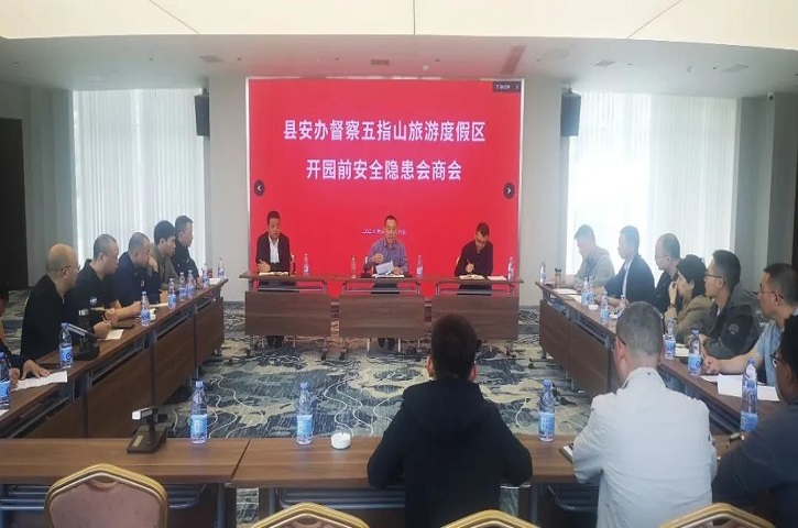 县安办组织召开督查五指山旅游度假村开园前安全隐患会商会。会议学习了《关于切实加强旅游景区安全防范工作的通知》,明确涉旅行业部门、属地政府和企业的责任;蜀道五指山旅游度假区汇报了4月17日联合检查发现问题隐患整改的情况;会后,各行业部门再次开展安全隐患排查。