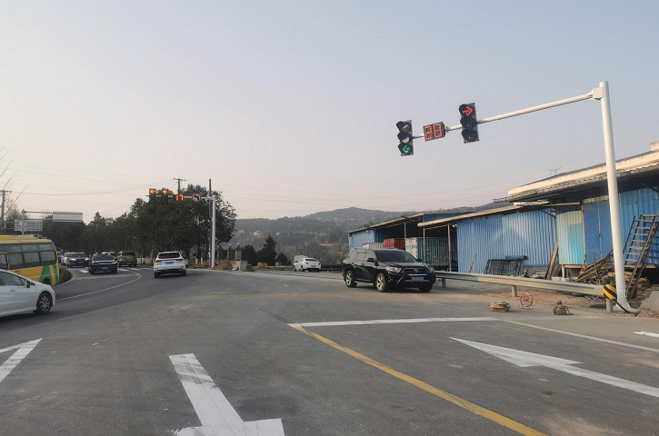 剑阁县普安城区刘家河至二道拱桥过境段公路与国道108 线连接线安全隐患整治工程起于国道108线K1954+300,止于K1954+600处,为Y型平交路口和急弯路口,路段为长下坡直行路段,共安装红绿灯7套、安全警示提示牌14块、电子抓拍卡口标志1套,太阳能爆闪灯1套、悬臂式交通告示标志牌1套,施划减速标线210㎡、热熔标线520㎡并更换桥梁及道路指示牌3套。