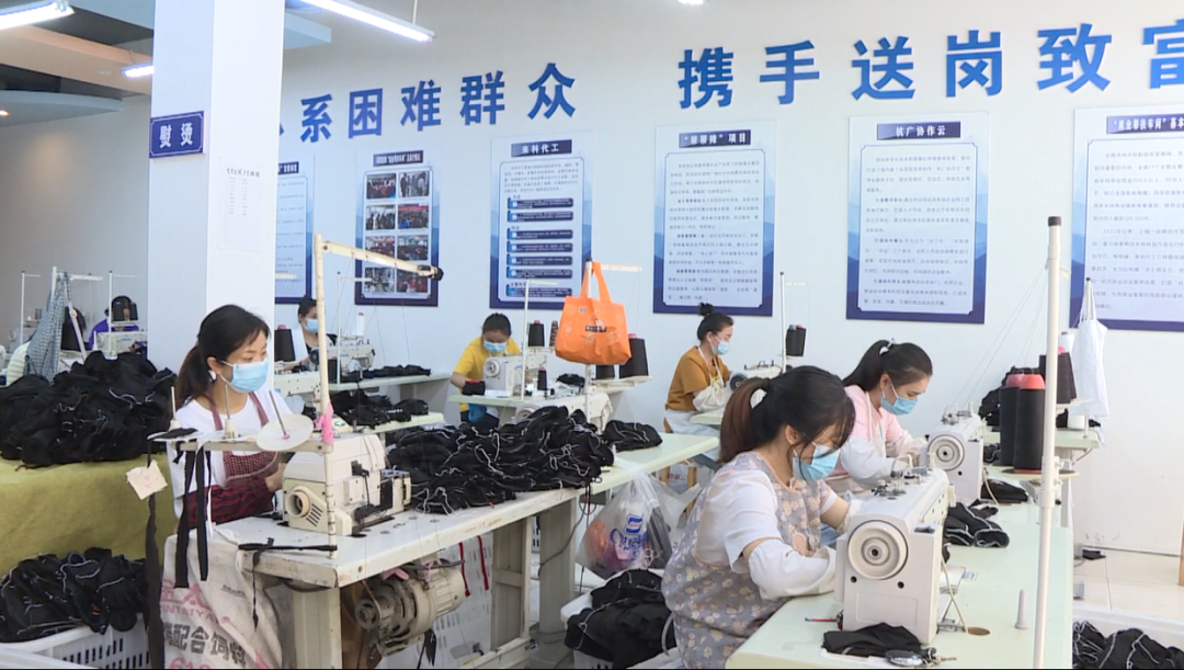 在下寺镇东西部劳务协作帮扶车间内,员工们正忙着给来自浙江温州、义乌等地的来料进行加工。60余岁的残疾人舒雪芹就是其中一员,她告诉记者,在这里工作收入稳定,生活也更有期待。