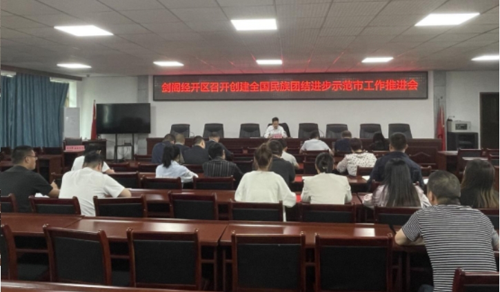 5月24日,剑阁经开区召开创建全国民族团结进步示范市工作推进会,党工委书记蒲向荣主持会议,经开区全体干部参会。