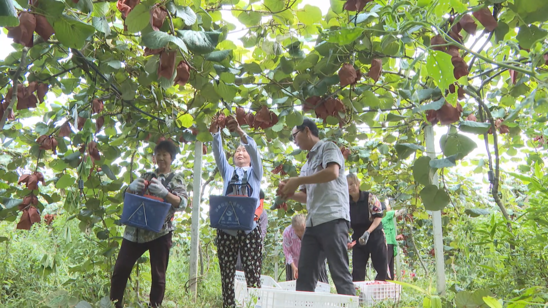 眼下正是猕猴桃成熟上市的季节,在开封镇千亩猕猴桃产业园里,一串串结实饱满的果实缀满枝头,散发出清甜的果香。趁着晴好天气,果农们挎着篮子穿梭在园内,熟练地采摘果子,呈现出一派繁忙的丰收景象。