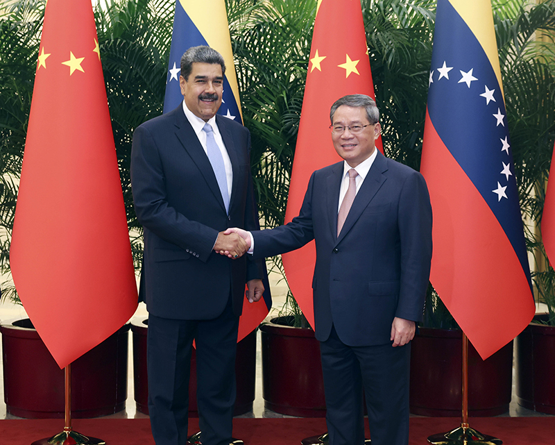 9月14日上午,国务院总理李强在北京人民大会堂会见来华进行国事访问的委内瑞拉总统马杜罗。新华社记者 刘卫兵 摄