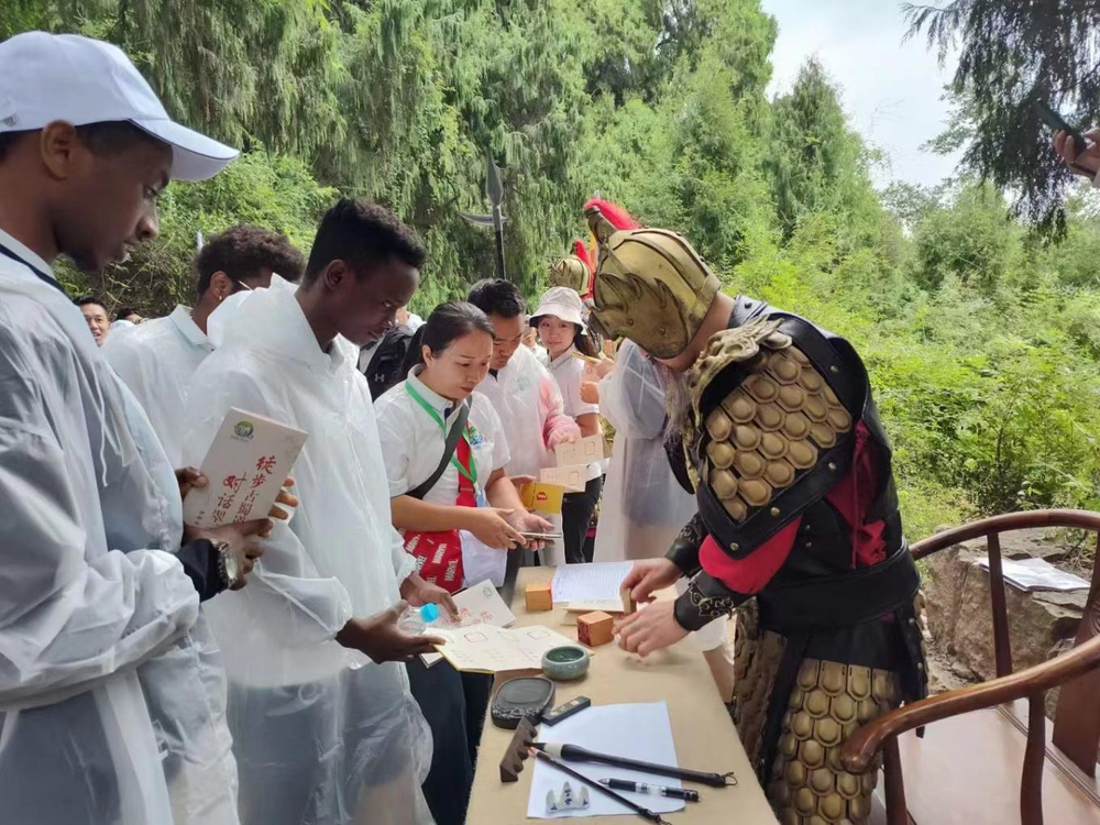 外国留学生获取通关印章(刘彦谷 摄)