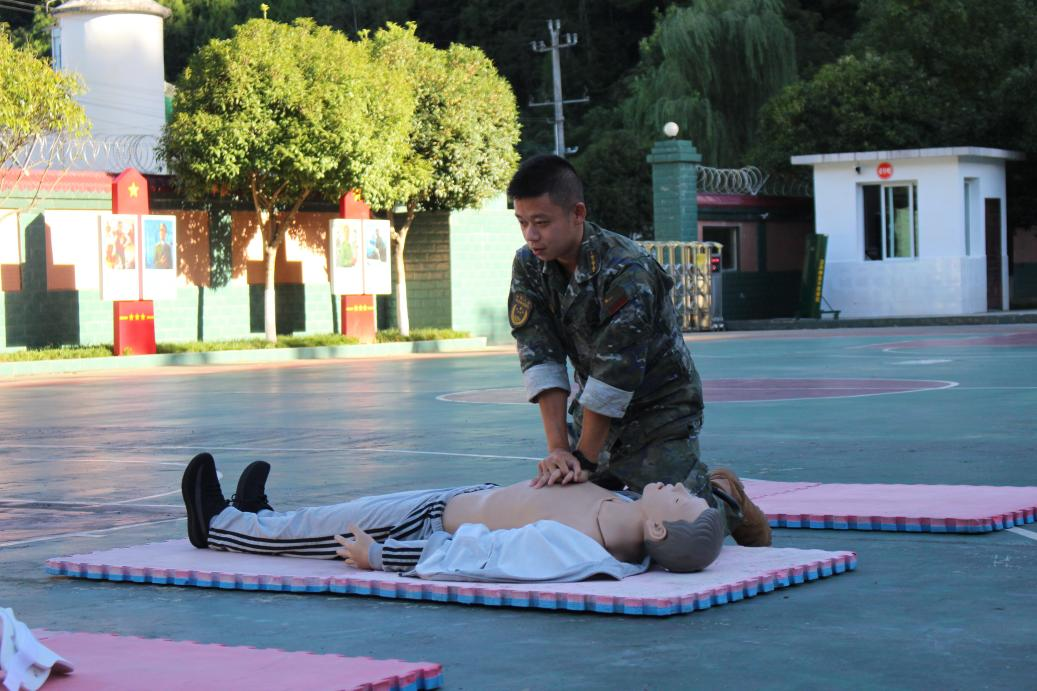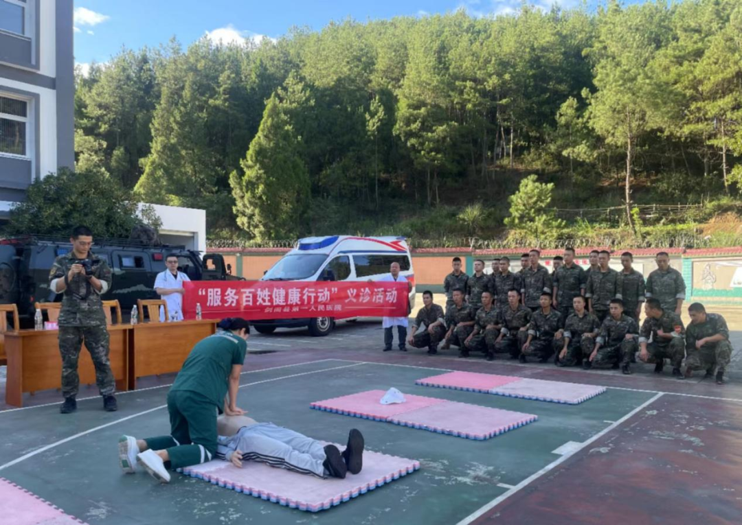 9月19日,剑阁县第一人民医院的义诊医疗队走进剑阁县武警中队,急诊科医护人员为部队官兵开展“徒手心肺复苏”“海姆立克急救法”的急救知识培训。