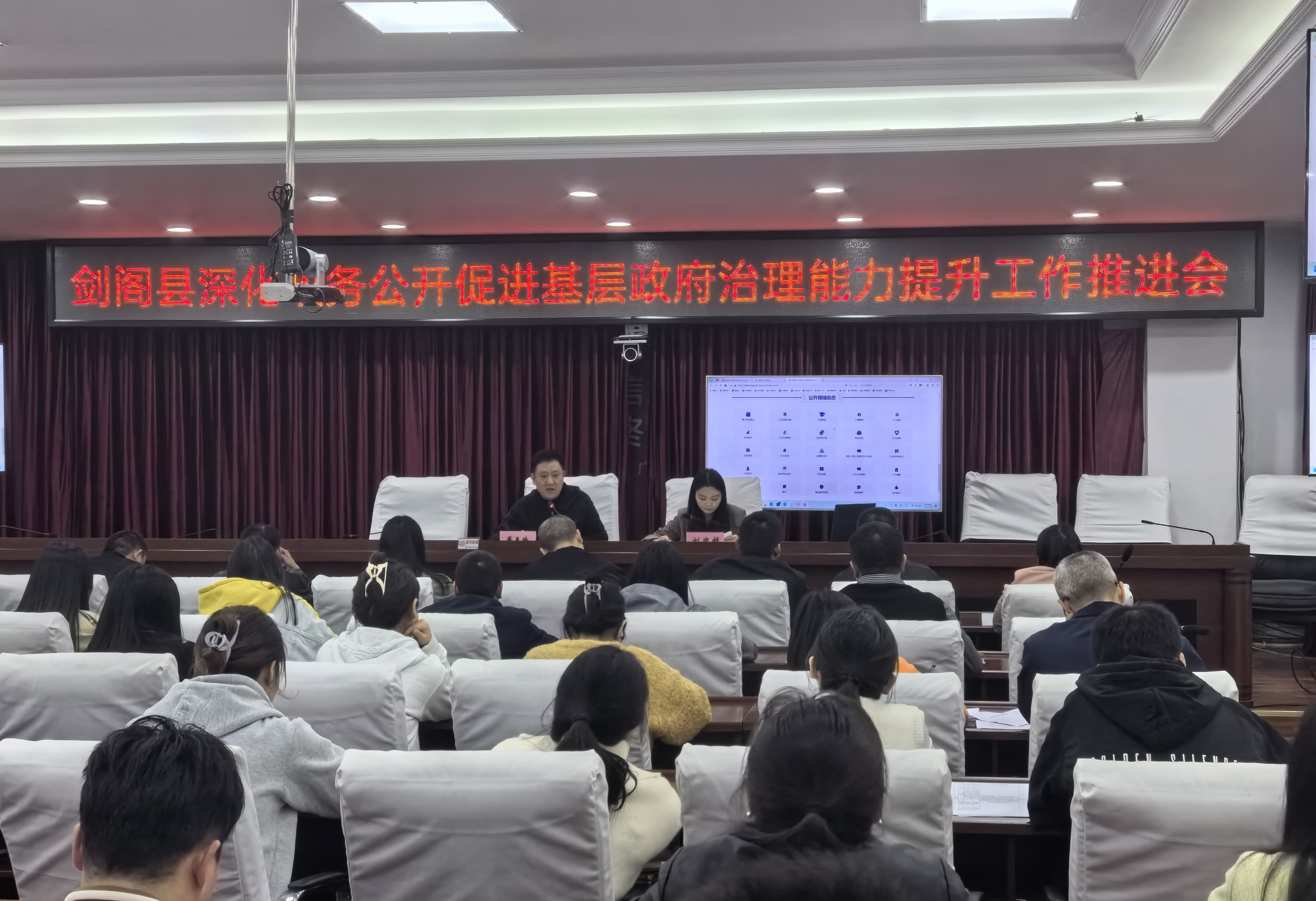 为全面加快推进深化政务公开促进基层政府治理能力提升第二批先行县建设进度,进一步完善基层政务公开工作机制,聚力打造政务公开示范平台,加强政务公开队伍能力培训,大幅提升基层政务公开标准化规范化建设水平,确保在今年内全面完成各项规定任务。10月18日,剑阁县人民政府办公室组织召开深化政务公开促进基层政府治理能力提升工作推进会。各乡镇、县级相关部门共70余人参加会议。