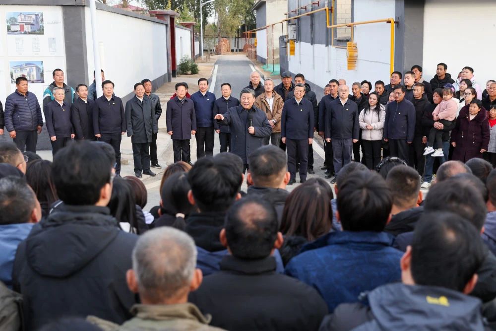 这是10日下午,习近平在河北保定涿州市刁窝镇万全庄村房屋重建施工现场考察。