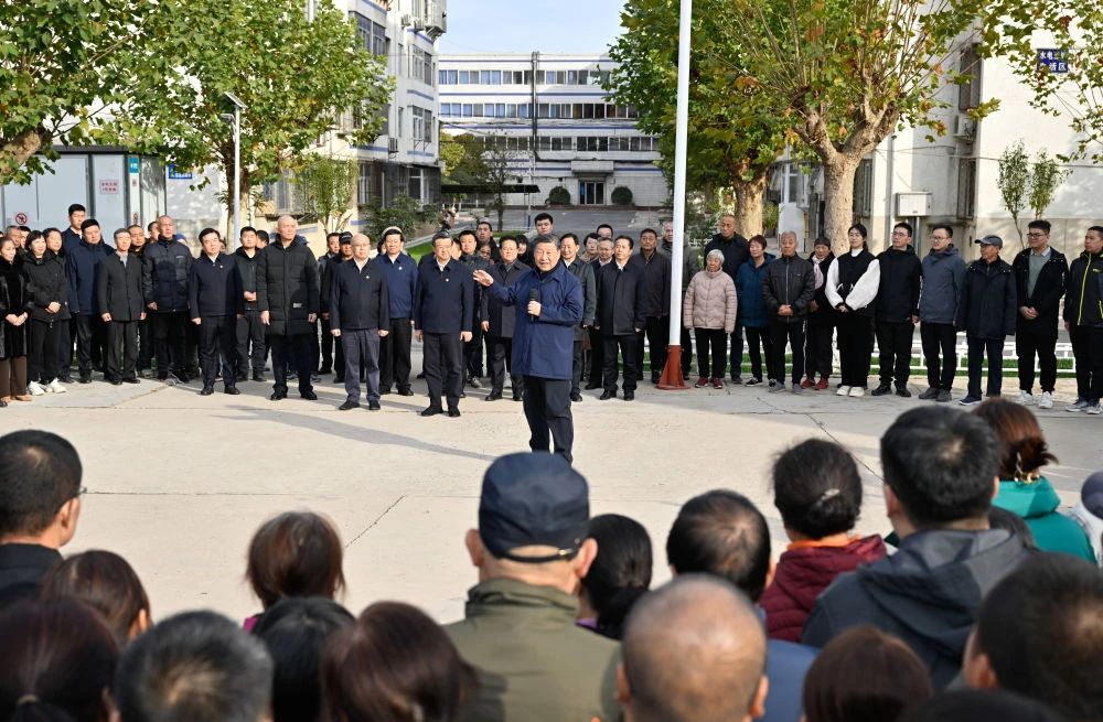 这是10日下午,习近平在河北保定涿州市双塔街道永济秀园小区考察时,同小区居民们亲切交流。