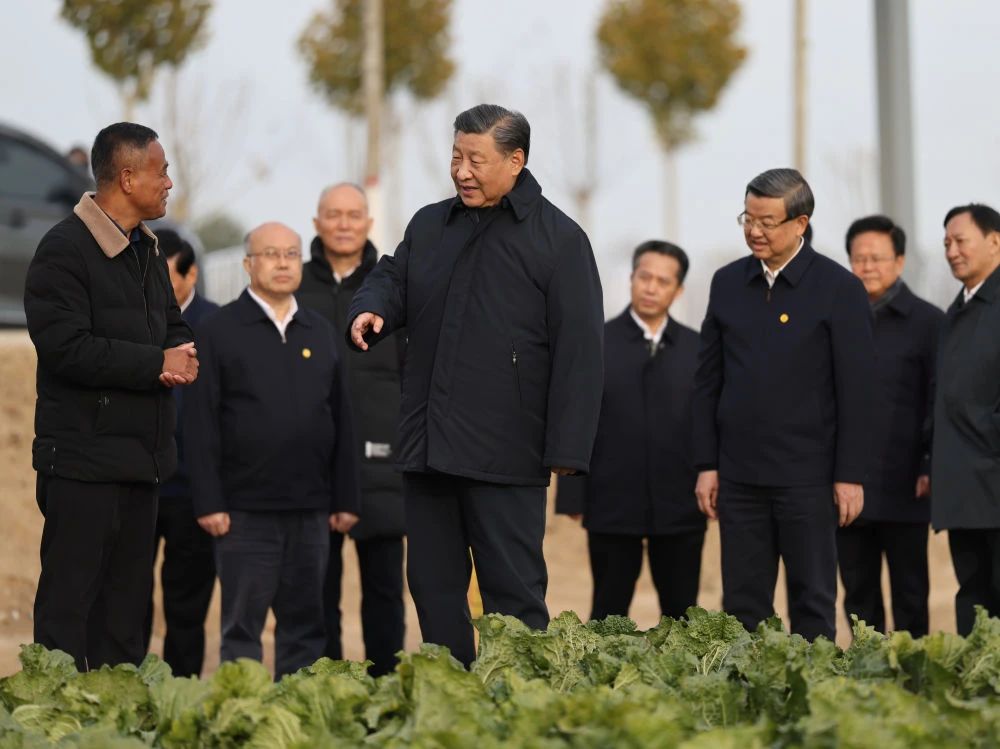 这是10日下午,习近平在河北保定涿州市刁窝镇万全庄村村边农田察看大白菜长势。