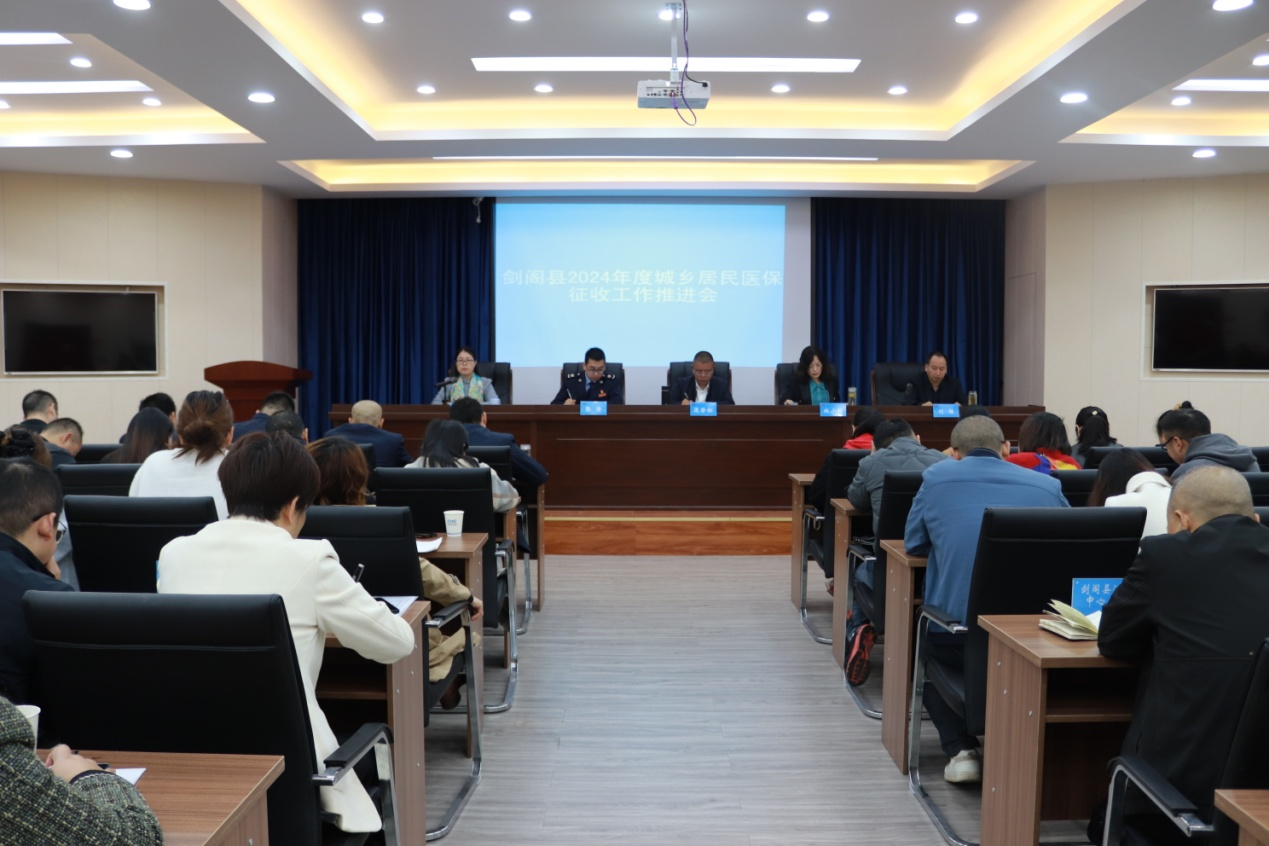 为切实做好2024年度城乡居民医保参保征收工作,2023年11月8日,剑阁县医疗保障局组织召开2024年度城乡居民医保征收工作推进会。县医保局党组书记梁登松、局长杜小琼、党组成员、副局长王润芬、县税务局副局长张涛出席会议并讲话,普安镇、姚家镇、汉阳镇政府作经验交流发言,县医保局党组成员、副局长刘胜主持会议。
