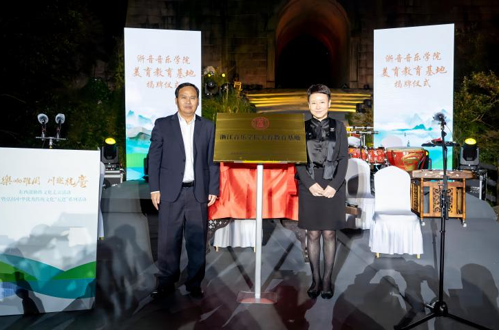 演出期间,参加活动的两地领导共同为“浙江音乐学院美育教育基地”揭牌。