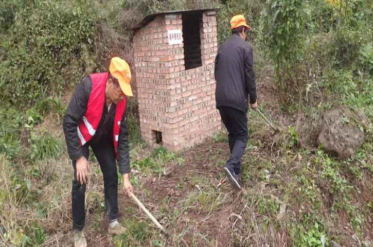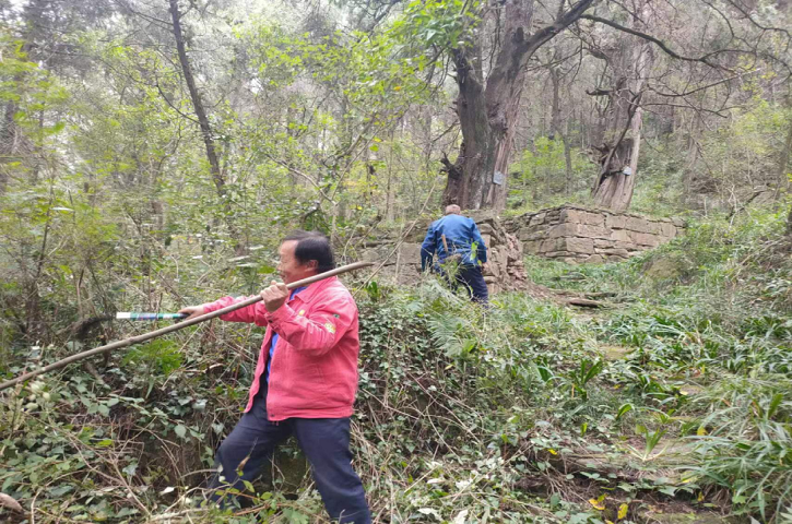 (盐店镇组织护林员对集中祭祀点周围可燃物进行清理)