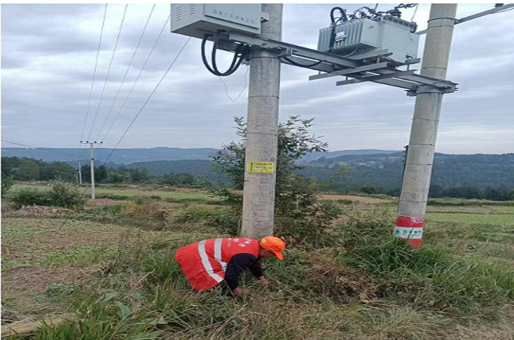 (盐店镇鲜花村组织护林员对电缘周边可燃物进行清理)