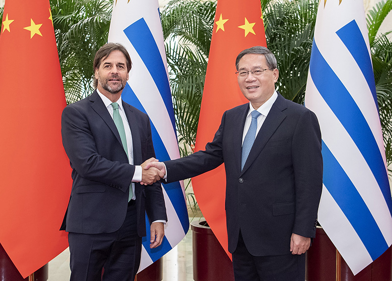 新华社北京11月23日电 国务院总理李强11月23日上午在人民大会堂会见来华进行国事访问的乌拉圭总统拉卡列。