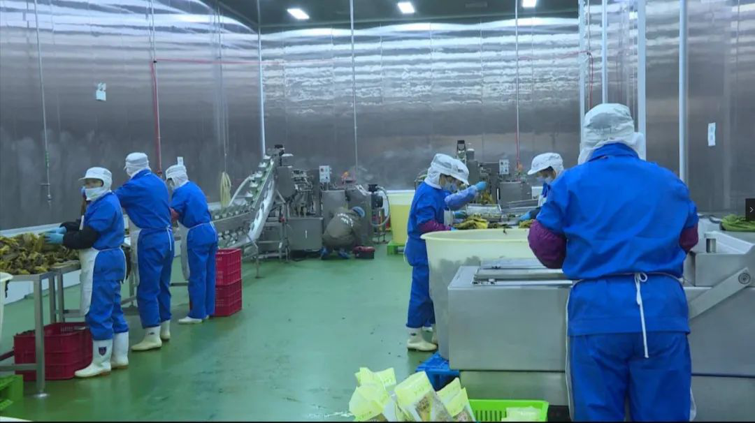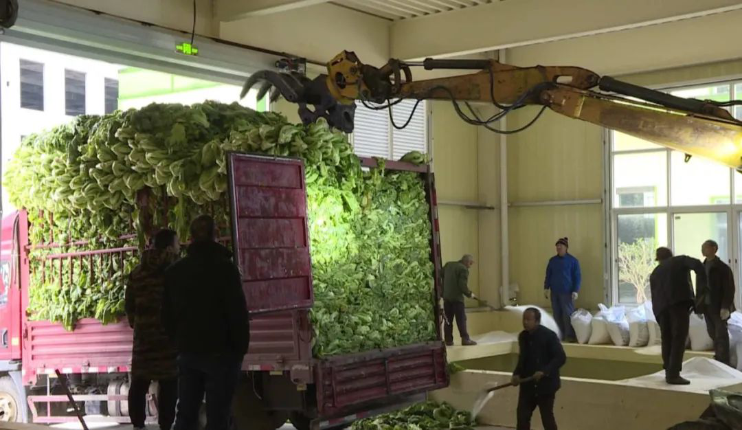 随着收购的原材料不断增多,这段时间,企业也开足马力抓紧生产。车间里,工人正忙着卸菜,并进行腌渍等初加工。