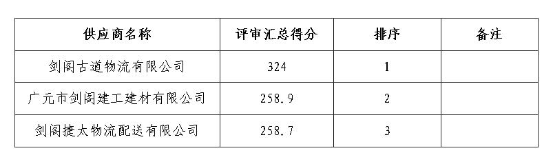 根据比选文件规则,确认剑阁古道物流有限公司为中选供应商。