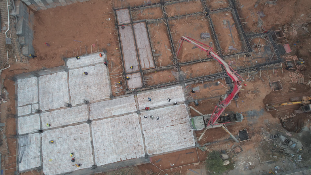 在剑州中学福心艺术楼施工现场,工人正在进行基础土方开挖、打桩、绑扎钢筋等,现场一片繁忙景象。该项目为广安对口帮扶援建项目,项目估算总投资约1470 万元,建筑面积约 4000 平方米,建成后,将全面提升学校艺术办学条件。