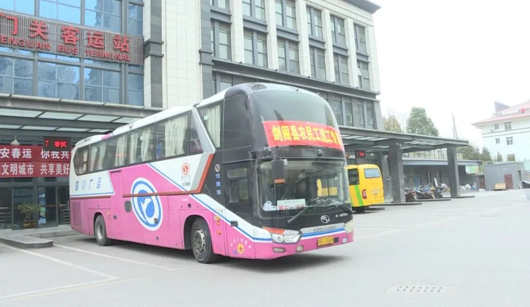 2月19日,我县举行2024年招聘会首批赴浙江务工“专车送工”欢送仪式。 53名剑阁籍务工人员在县人社部门组织下,免费乘坐赴浙江务工“点对点”专车分别前往杭州、宁波各地务工,开启新年新征