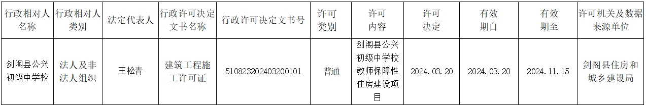 剑阁县住房和城乡建设局关于行政许可信息登记(法人)情况的公示(03月12日-03月26日)