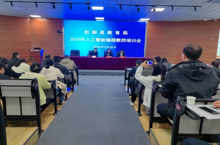 “2024年全国两会教育、科技、人才频成热词,过去教育就是教育,现在三者已紧密联系并有机结合在一起,这对教师教学提出了更高的要求,如何通过智能教育,赋能学生、赋能未来迫在眉睫。”3月26日,在剑阁县教育局2024年人工智能编程教师培训会上,特邀嘉宾燕山大学电子信息科学与技术理学学士、青少年机器人课程讲师、少年编程课程设计师周苇向参会教师说道。
