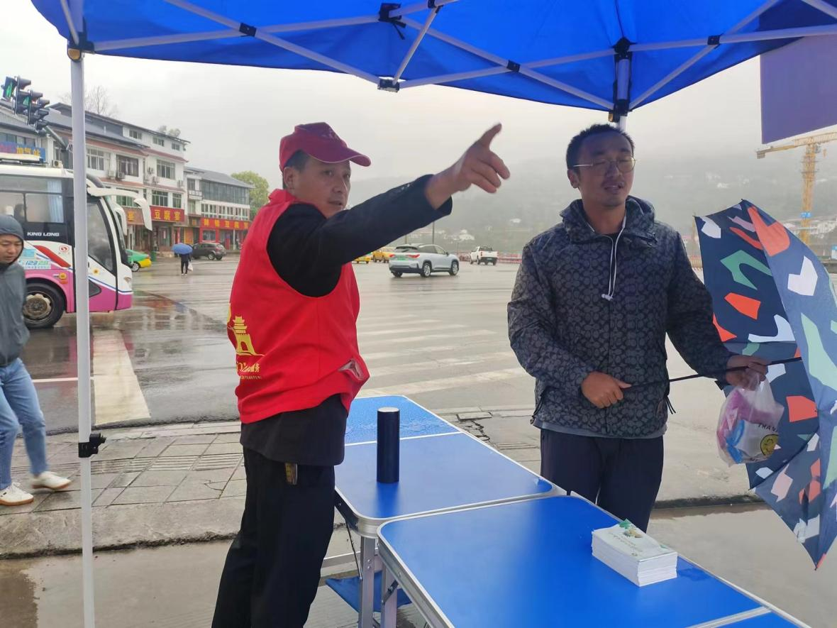 “剑门关景区怎么走?”“当地特色美食和住宿可以推荐一下吗?”一名外地游客向三江口点位志愿者询问,身穿红马掛的志愿服务者们正在热情为游客解答疑问,为他们提供道路指引及咨询服务。
