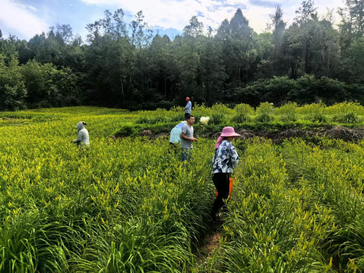 左飞龙告诉记者,2021年,他到外地考察并引进台湾大金针黄花,利用荒山荒地试种了15亩,去年实现初投产,今年,有80%的黄花已进入盛花期。从6月初开始,平均每天可采摘活花800斤,经晾晒、烘干、分选后发往福建销售,而采摘期也将一直延续到7月中旬。