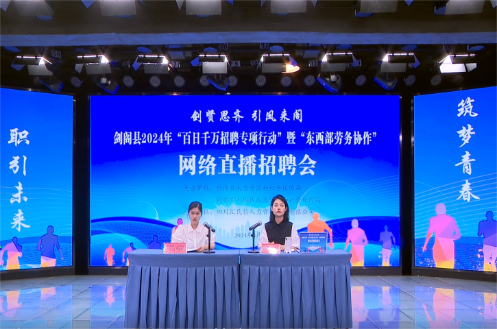 8月2日,剑阁县人社局召开2024年“百日千万招聘专项行动”暨“东西部劳务协作”网络直播招聘会,通过网络平台为高校毕业生、就业困难人员等重点群体搭建了便捷高效的就业桥梁。