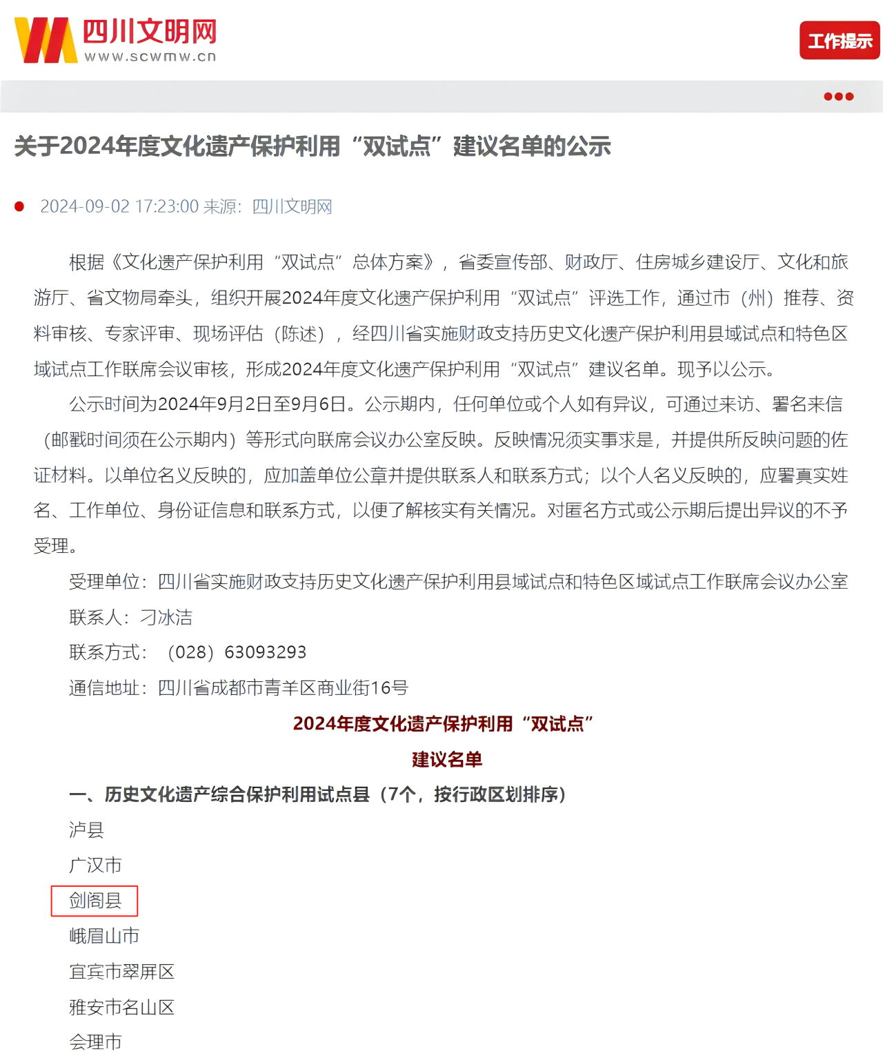 剑阁县入选2024年度文化遗产保护利用“双试点”建议名