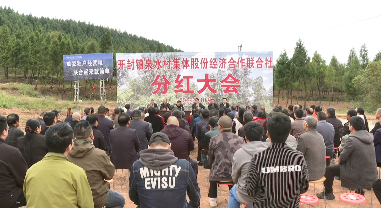开封镇泉水村因地制宜,凭借得天独厚的林业资源和便利的交通条件,通过规模化种植和引进企业合作等形式,全面推动实施国储林项目1万余亩,吸纳村内群众就近务工,在增加集体经济收入的同时,扩宽群众增收渠道,壮大村集体经济,实现强村富民。在该村的集体经济分红现场,按照人均约30元的分红方案,全村1016人共计分红3万余元。拿到红利后,大家心里乐开了花。