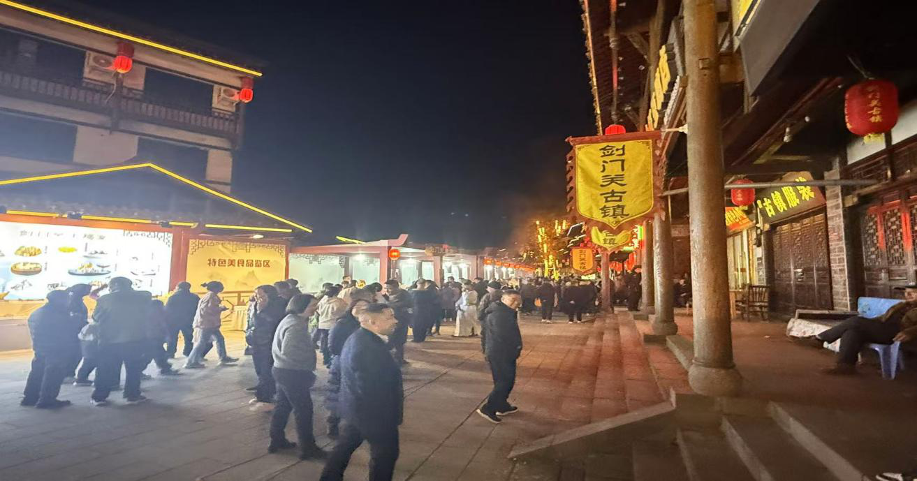 2024年11月20日,剑门关古镇上热闹非凡活动不断,吸引了众多游客前来体验,共同感受剑门关夜幕下的独特韵味。
