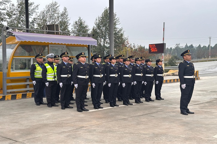 在濛子梁超限检测站,代表们观摩了交通运输执法大练兵。15名执法人员精神饱满、步伐整齐、口号洪亮、动作规范,佩戴专业执法装备,严格按照执法流程,模拟展示了整治货运车辆超限超载、查处非法营运车辆的执法场景,并展示了队列会操、交通手势及准军事化内务,展现出剑阁交通执法人强技能、淬血性、磨意志的精神风貌,职业专业技能和规范文明的法治素养更有深度,现场收集意见和建议10余条。受邀代表肯定了交通运输行政执法工作取得发展成果,感受到了剑阁县交通运输局通过不懈努力,打造出一支高水平、高素质、高标准的执法队伍。