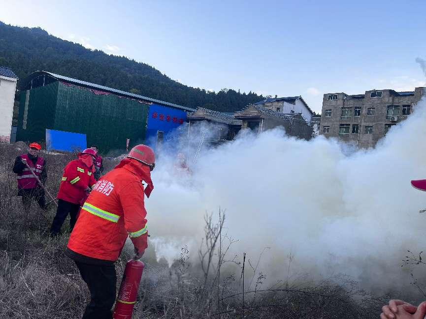 安全宣讲阶段:下午4:30,镇长对此次消防演练的目的及重要性进行了传达贯彻;镇应急办负责人向应急抢险队伍及镇村干部群众说明了隐患排查,火灾扑救,器材使用等消防常识,现场演示了灭火器的正确使用方法,并逐一指导参演人员实际学习操作灭火器,体验灭火全过程,做到要领熟悉掌握,动作迅速准确,培训入脑入心。