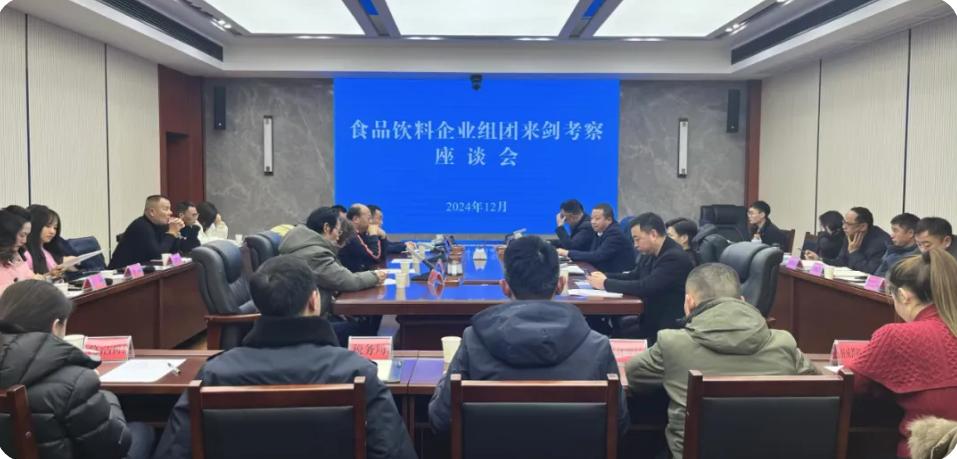 12月18日,剑阁县招商大使、休闲食品头部企业雅娴集团董事长高清带领15家链条企业组团来剑考察剑阁食品产业项目。县人大常委会主任、县食品饮料产业专班班长张大勇出席考察座谈会,县委常委、统战部部长、县总工会主席权友明主持会议并陪同考察。