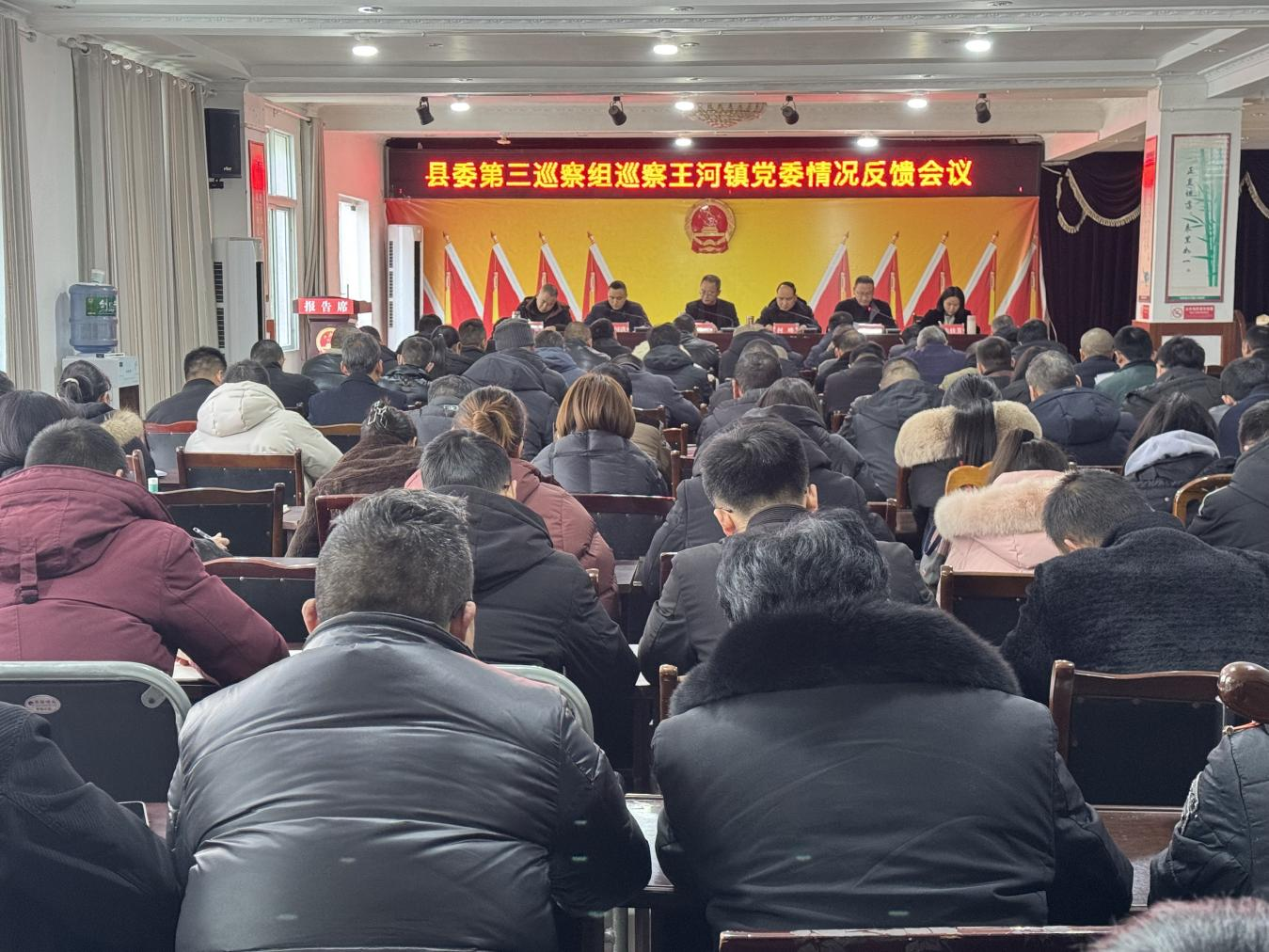 2025年1月10日上午,县委第三巡察组巡察王河镇党委情况反馈会召开。县委巡察领导小组成员,县纪委常委、县委巡察办主任何峰传达了县委巡察工作领导小组会议和县委书记专题会精神,杨国洪反馈了巡察情况,县政协副主席唐永红对做好巡察整改工作提出要求,王河镇党委书记田克平主持反馈大会并作表态发言。