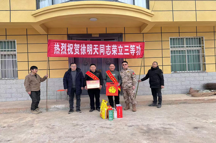 在冬日暖阳的照耀下,盐店镇依山村迎来了荣耀与喜悦的时刻。由盐店镇退役军人服务站组建的送喜报队伍,满怀敬意与热情,前往徐明天家中,为这位英勇的现役军人家属送去三等功喜报。
