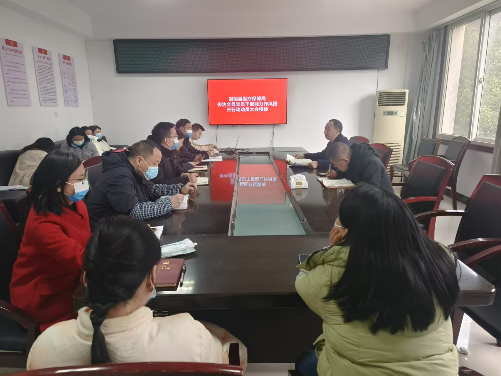 为全面贯彻落实市、县纪律作风建设三年提升行动要求,进一步促进医保干部改进工作作风,提升工作效能,形成开年就“拼发力、不服输、敢争先”的精气神。2025年2月6日,剑阁县医保局召开“提能力、转作风、促实干”能力提升工作动员会议。