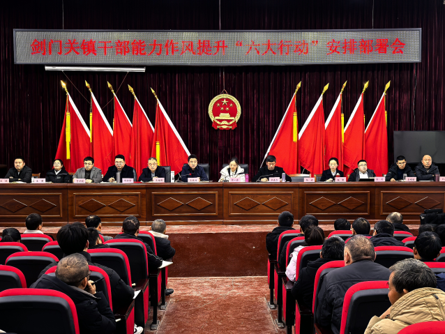 为深入贯彻落实县委关于干部能力作风提升行动部署要求,近日,剑门关镇党委、政府紧紧围绕服务中心大局各项任务,以“提能力、转作风、促实干”为目标,组织召开干部能力作风提升“六大行动”安排部署会。会议由镇党委副书记、镇长徐一鑫主持,镇领导班子成员、全体镇村干部共计120余人参加。