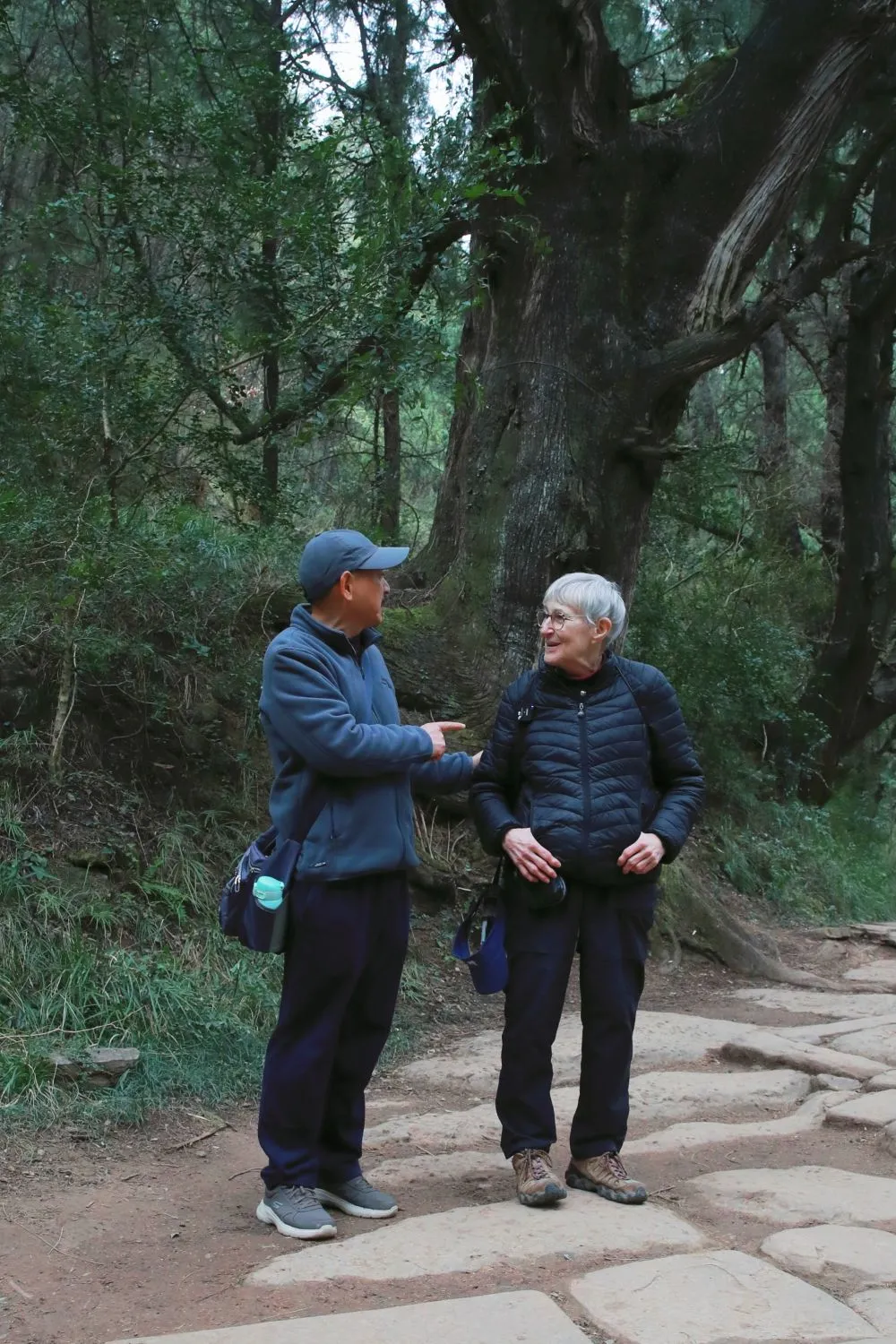 古树见证下,老朋友久别重逢,新故事仍在续写。最近几年,贾和普每年都会带来十几位对蜀道文化感兴趣的朋友同走蜀道。她一路走,一路如数家珍,娓娓道来。“我们走的拦马墙路段,修建于2300年前。”她指着路旁的矮石墙说,“古时有很多马匹走过,为了防止马跌落,在转弯的地方垒了矮石墙。”