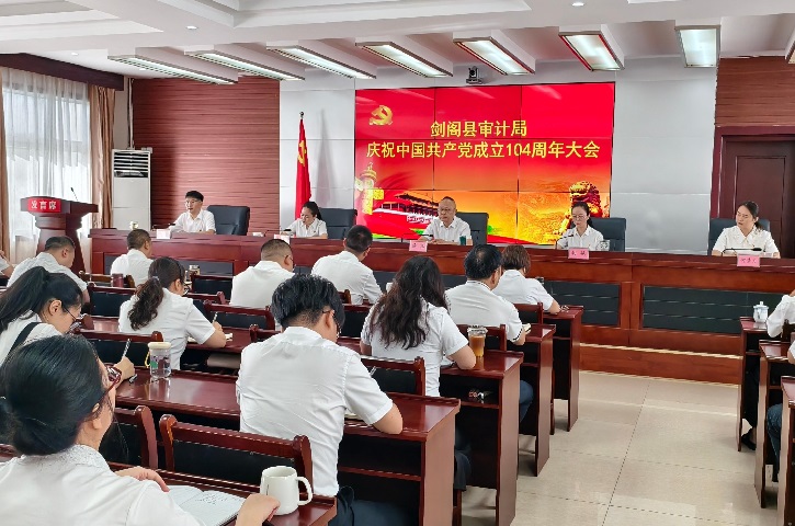 在中国共产党成立104周年华诞之际,剑阁县审计局召开庆祝大会,党组书记、局长侯猛总结一年以来取得的各项工作成效,亮出审计项目、审计能力、自身建设等每门科目的“优秀成绩单”,给党交上了一份“满意答卷”。