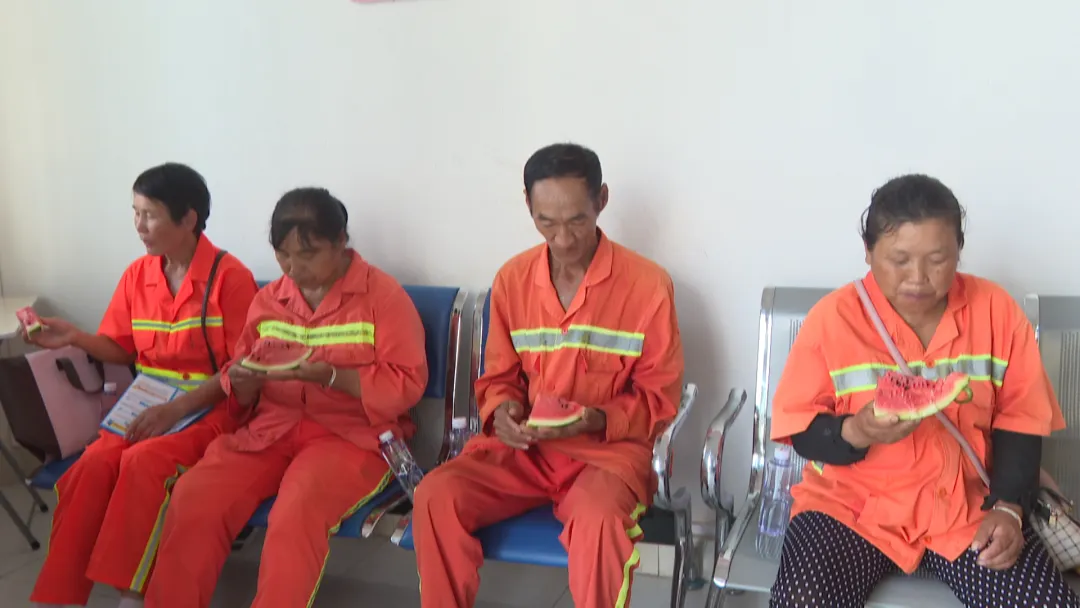 走进爱心驿站,虽空间不大,但功能设施一应俱全。除配备电视、空调、饮水机、冰箱等基础“标配”外,驿站内还贴心准备了雨具、报刊书籍等物资。针对持续高温天气,县环境卫生事务中心工作人员更是定期为环卫工人等群体送上冰镇西瓜等解暑佳品。在这里,户外工作者们可以歇脚纳凉、补充水分,高温带来的疲惫感在清凉舒适的环境中悄然消散。