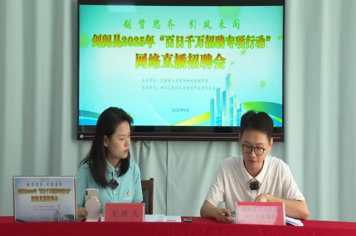 8月28日上午10点,由剑阁县人力资源和社会保障局主办,四川汇民信人力资源开发有限公司承办的剑阁县2025年“百日千万招聘专项活动”网络直播招聘会在一片热烈的氛围中成功举办。此次招聘会借助网络平台,打破了时间和空间的限制,为求职者和企业搭建起了一座便捷高效的沟通桥梁。