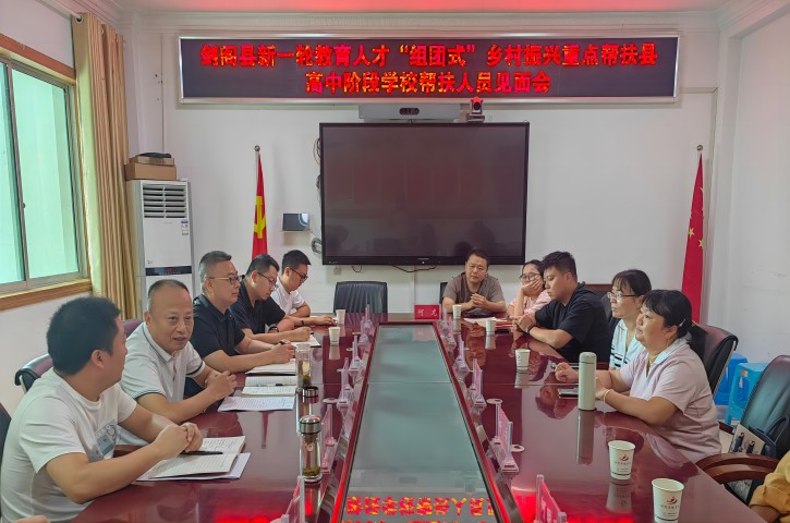 8月28日,剑阁县新一轮教育人才“组团式”乡村振兴重点帮扶县高中阶段学校帮扶见面座谈会顺利召开。县人民政府总督学杨树新、县教育局副局长董安军(挂职)出席会议并讲话。县委组织部、县教育局相关负责同志、剑州中学对接工作专班成员,以及新一轮“组团式”高中阶段帮扶全体人员参加了会议。