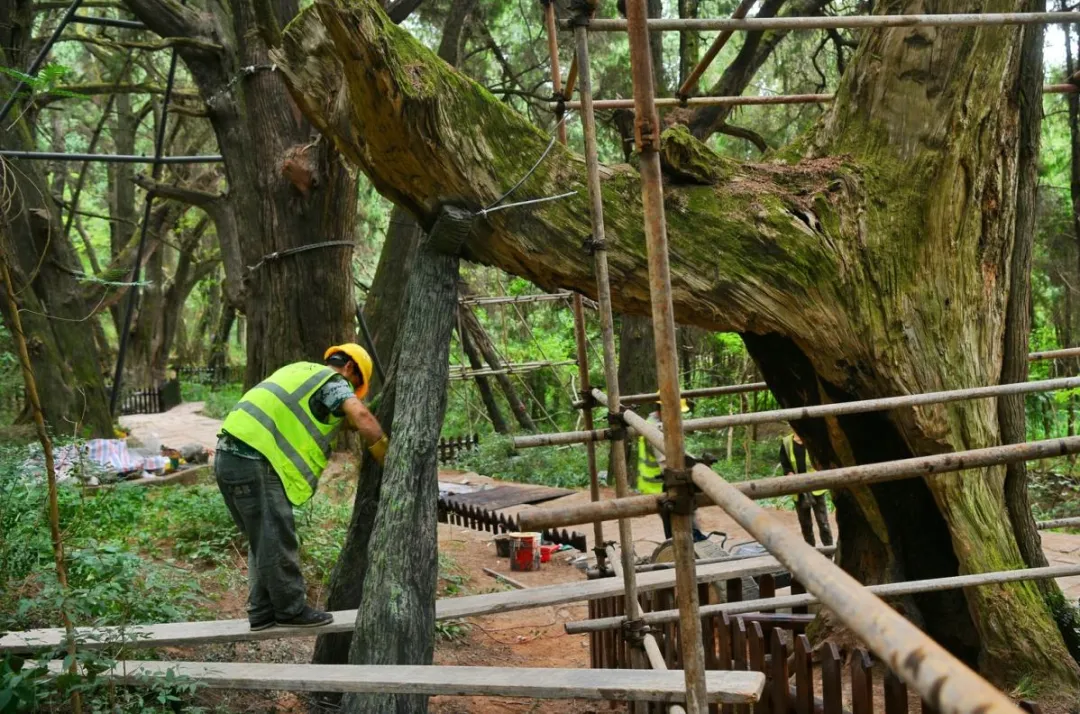 这片全世界最大的人工古柏林,之所以能够延续得这么久、保护得这么好,得益于明代开始颁布实行“官民相禁剪伐”“交树交印”等制度,一直沿袭至今、相习成风,更得益于当地百姓世代共同守护。