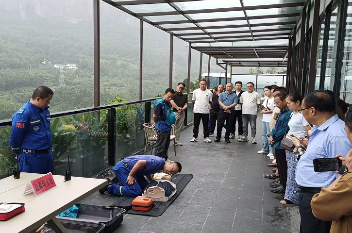 (蓝天救援队开展伤员心肺复苏应急救援)