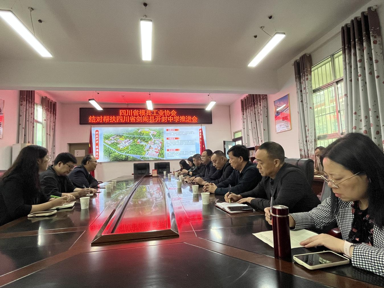 在随后召开的结对帮扶座谈会上,各方围绕深化帮扶合作展开深入交流。县民政局对四川省模具工业协会主动践行社会责任、投身“万企兴万村”行动表示感谢,希望深化结对成效,搭建长效合作桥梁,让帮扶成果惠及更多群体;县教育局就县域教育发展现状、开封中学办学需求作了说明,期盼协会在师资培训、实训设施改善等方面给予支持;开封中学校长代表全校师生致谢,承诺将用好帮扶资源,提升办学质量,培养更多优秀人才。