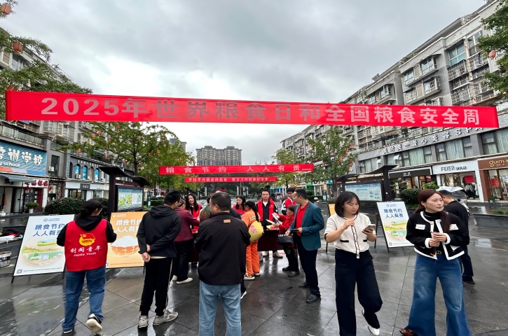与此同时,借助剑阁融媒等线上平台,推送了“2025年世界粮食日和全国粮食安全宣传周”主题宣传视频,进一步扩大了活动的覆盖面与影响力。学生、企业及群众三方代表通过视频发出倡议,呼吁全县居民树立爱粮节粮的意识,主动学习科学储粮方法,并在日常生活中积极践行“光盘行动”,共同营造珍惜粮食、反对浪费的良好社会风尚。